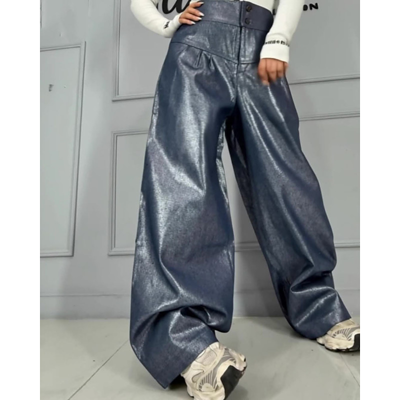 Women's Straight-Leg Trousers Fashion Streetwear Sparkle Full Length High Waist Plain Shimmery Comfy Soft Comfortable Inelastic Outdoor Party Silver Black Pink Fuchsia Summer Spring Regular Fit
