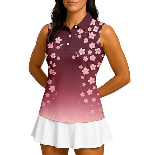 Per donna Floreale Maglietta sportiva Polo da golf Canotta Maglia da tennis Senza Maniche Floreale Bottoni UPF50 Resistente ai Raggi UV Alta elasticità Traspirante Pallavolo Tennis Golf Colletto