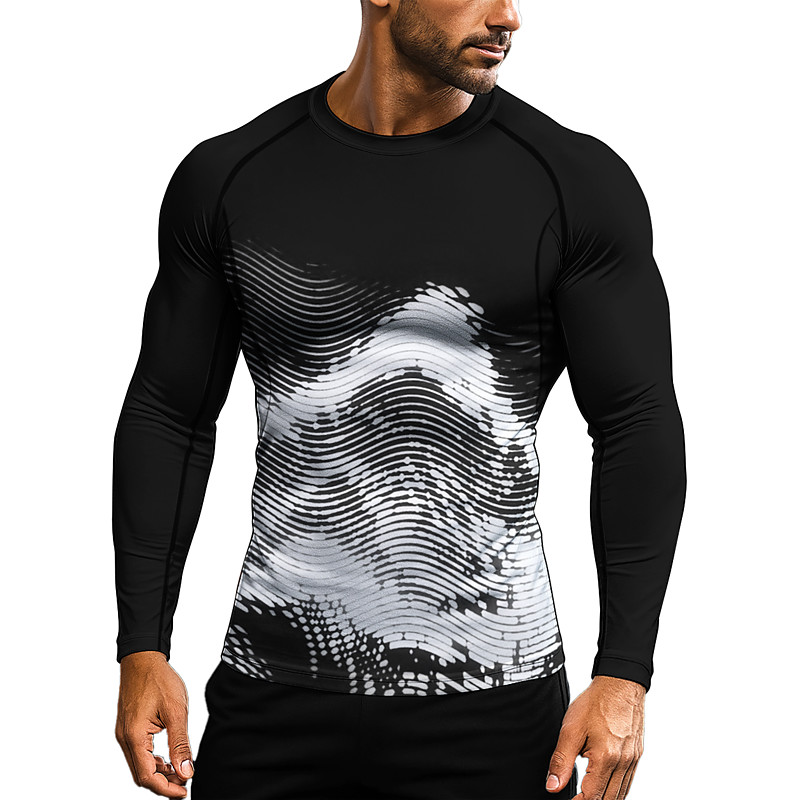 Men's Running T-Shirt Athletic Shirt Gym Shirt Fitness Shirt Workout Shirt Long Sleeve Tee Tshirt Abstract UPF 50 UV Resistant Soft Sweat wicking Mountain Bike / MTB Gym Workout Mountain Bike MTB
