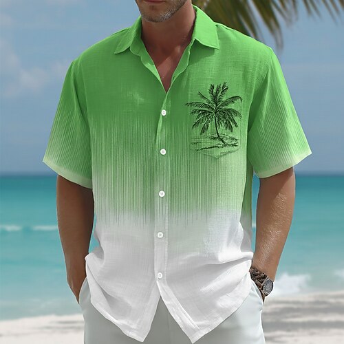 Per uomo Albero di Cocco Colore sfumato Piante Tropicali Camicia hawaiana estiva Camicia con Bottoni Camicia Aloha Manica Corta Hawaiano Vacanza Ferie Abbigliamento mare Estate Primavera Collo