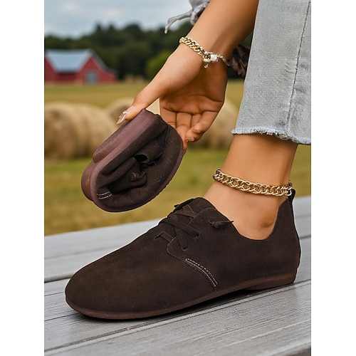 scarpe basse casual da donna con lacci marroni a piedi nudi – scarpe leggere e larghe per passeggiate in campagna, marroni e da indossare tutti i giorni