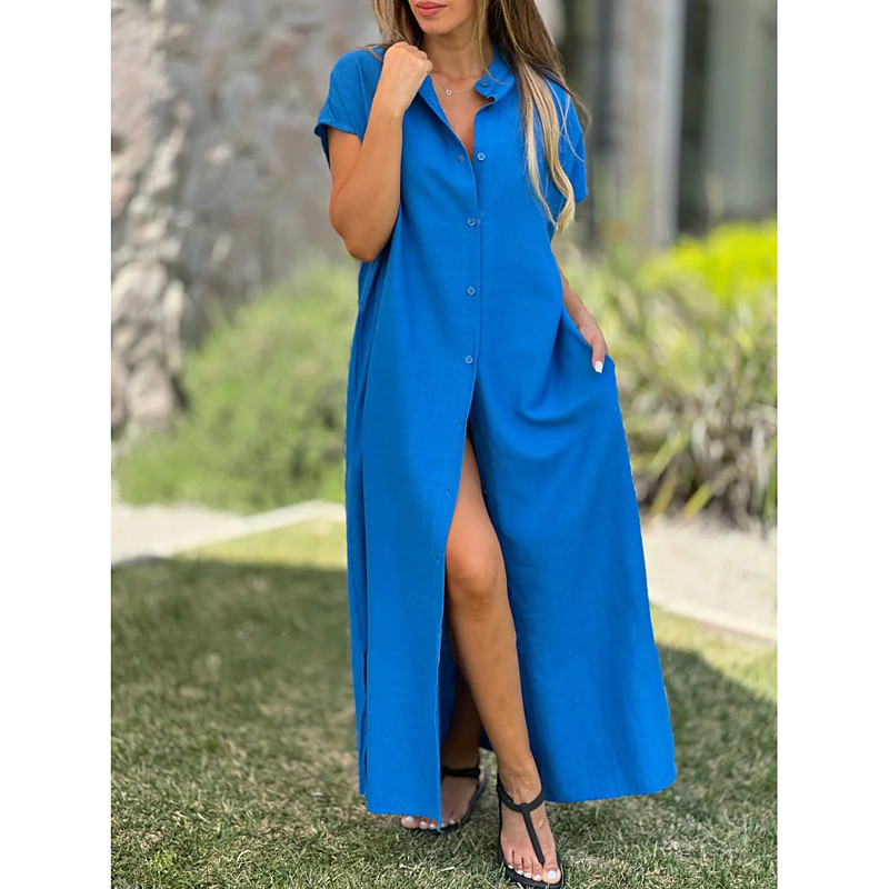 Women's Maxi Dress Sundress Summer Dress Casual Daily Holiday Linen Like Beach Regular Fit Plain Short Sleeve High Neck Pink Blue Orange Green Summer