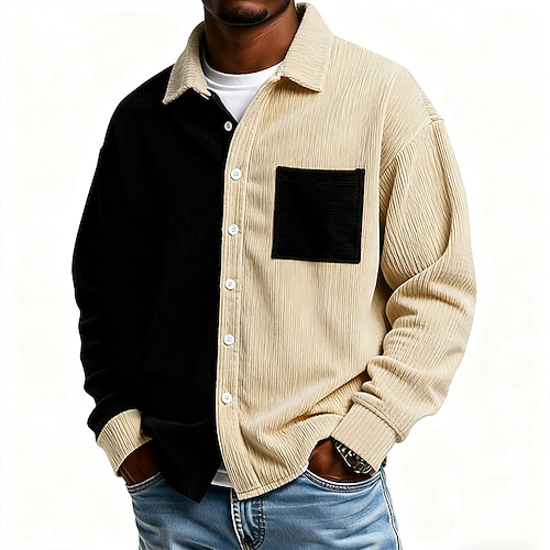 Per uomo Camicia Camicia casual Camicia di Velluto a Coste Camicia con Bottoni Blu Nero Kaki Manica Lunga Blocco di colori Bavero Casuale All'aperto Tasca Abbigliamento Poliestere Vintage Moda Casual