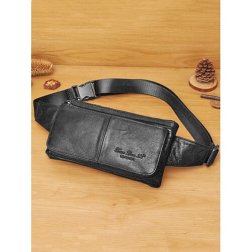 Marsupio e tracolla da uomo in vera pelle, nero e caffè, marsupio multiuso per casual, viaggi, attività all'aperto, spostamenti quotidiani e stile di vita cittadino