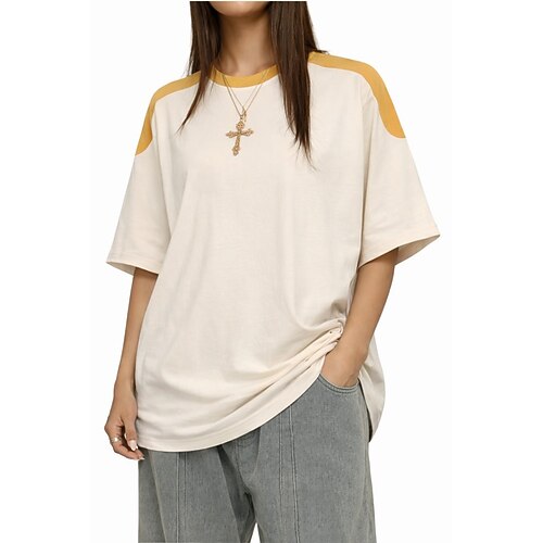 Per donna Taglia grande Maglietta T-shirt sportiva Blocco di colore Elegante Casual Manica Corta Girocollo Top Regolari Quotidiano Palestra Sportivo Nero Bianco Albicocca Primavera