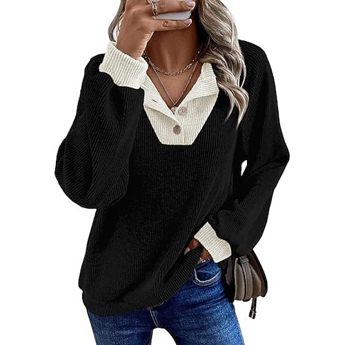 Per donna Felpa Pullover Blocco di colori Casual Manica Lunga Scollo a V Top Regolari Casa Streetwear Ferie Patchwork Bottoni Nero Verde Cachi Blu scuro Grigio Autunno Inverno