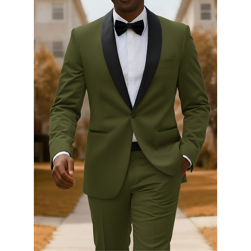 Men's Wedding Business Party Suits Shawl Lapel Black Burgundy Daily Formal Solid Colored Standard Fit 2 Piece Single Breasted One-button