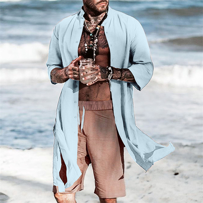 Men's Shirt Linen Shirt Hooded Shirt Plain Vacation Casual White Blue Green Coffee Long Sleeve Hooded Fall Spring Summer Clothing Apparel