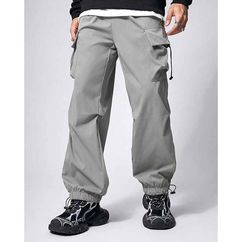 Men's Trousers Baggy Pants Casual Pants Drawstring Pocket Elastic Waist Plain Comfort Soft Casual Daily Outdoor Vacation Fashion Dark Brown Black