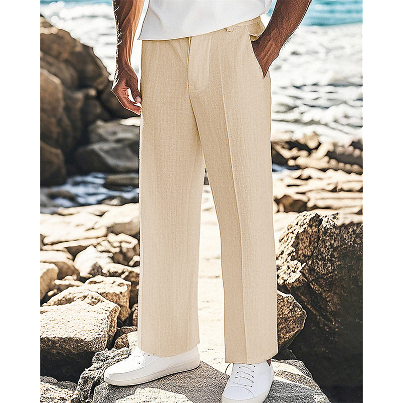 Men's Linen Pants Trousers Summer Pants Beach Pants Pocket Plain Comfort Breathable Vacation Daily Holiday Hawaiian Boho Black White