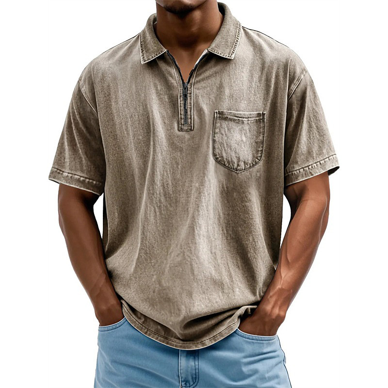 Men's Zip Polo Polo Shirt Casual Holiday Lapel Quarter Zip Short Sleeve Fashion Basic Plain Quarter Zip Summer Regular Fit Black White Pink Red Brown Dark Grey Zip Polo