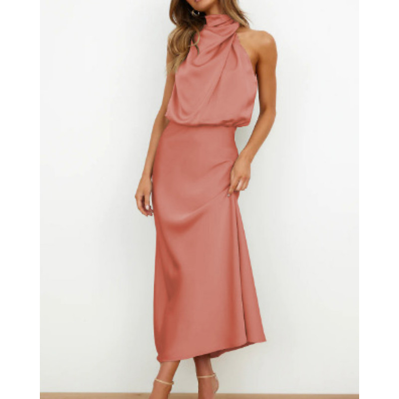 Women's Midi Dress Long Dress Maxi Dress Satin Dress Prom Dress Party Dress Elegant Fashion Modern Evening Party Party Special Occasion Regular Fit Slim Plain Sleeveless High Neck Magenta Light Green