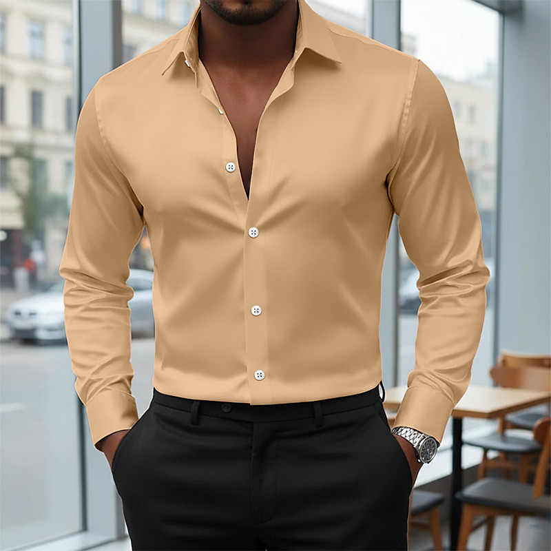 Men's Shirt Silk Like Satin Shirt Dress Shirt Casual Shirt Prom Shirt Plain Formal Wedding Black White Red Royal Blue Long Sleeve Lapel Spring Fall All Seasons Clothing Apparel Plain