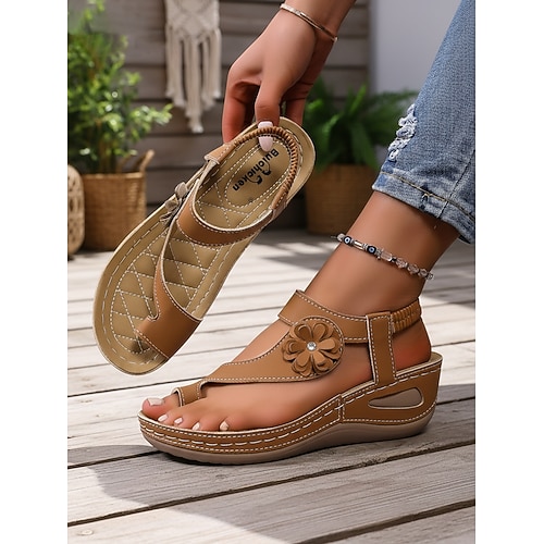 sandali da donna con dettagli floreali rossi, cinturino elasticizzato e comoda suola a zeppa, comode scarpe casual da indossare tutti i giorni, spiaggia, vacanza, passeggiate e attività all'aperto