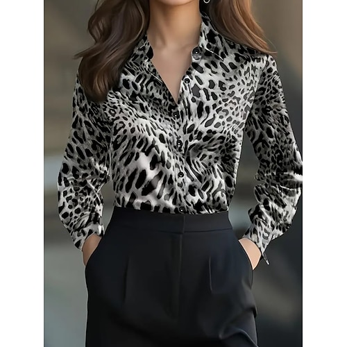 Per donna Camicia da lavoro Grafico Leopardo Elegante Essenziale Casual Manica Lunga Colletto a Camicia Top Regolari Lavoro Abbigliamento da sera Quotidiano Marrone Grigio Estate Autunno Inverno