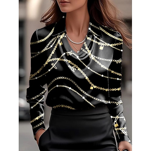 Per donna Camicia da lavoro Floreale Grafico Elegante Essenziale Casual Manica Lunga Colletto a Camicia Top Regolari Lavoro Abbigliamento da sera Quotidiano Bianco Rosso Viola Oro Grigio Estate