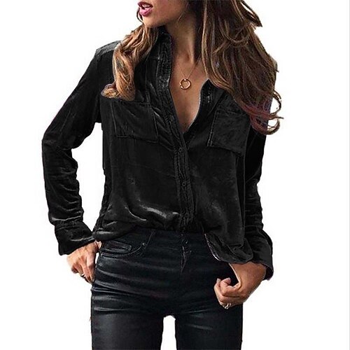 Per donna Camicia Blusa Semplice Attivo Elegante Manica Lunga Colletto a Camicia Top Regolari Abbigliamento da sera Ferie Uscire Tasca Bottoni Verde primavera Nero Blu Reale Marrone Grigio scuro