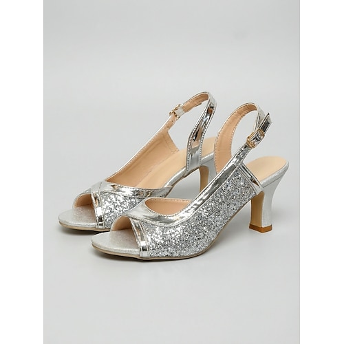 Sandali da donna scintillanti con paillettes argentate - eleganti décolleté con punta aperta in stile Gatsby anni '20 con finitura a specchio, perfetti per feste anni '20 ed eventi art déco. tacchi