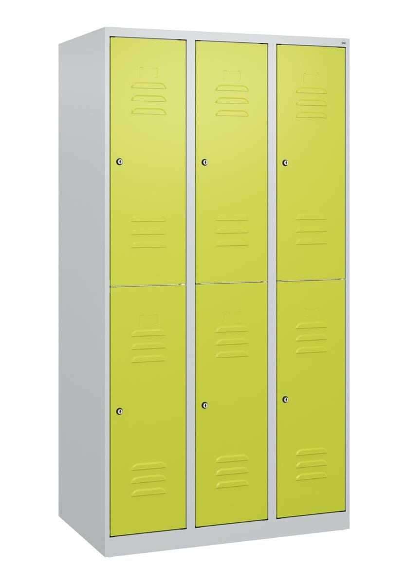 C+P Doppel-Spind Classic PLUS, schwebender Sitzbank aus Buche 2 Abteile, HxBxT 212x60x82cm, Zylinderschloss, Hellgrau/Clowngrün von PROREGAL