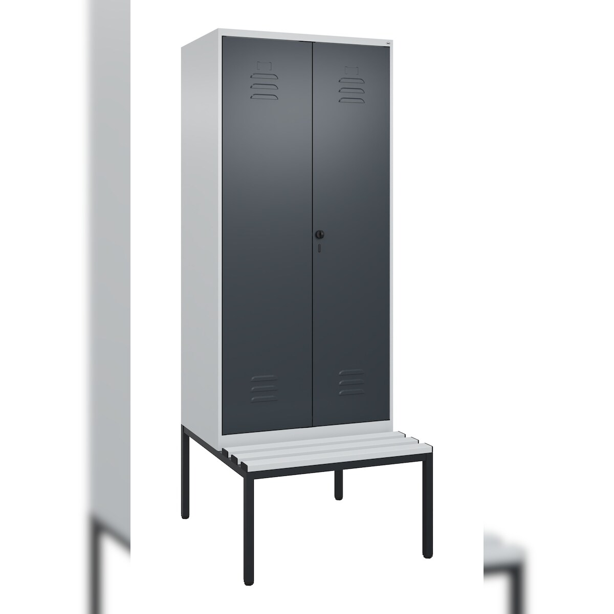 C+P Doppel-Spind Classic PLUS Kunststoff untergebaute Bank, 2 Abteile, HxBxT 212x80x82cm, Sicherheitsdrehriegel, Hellgrau/Anthrazit von PROREGAL