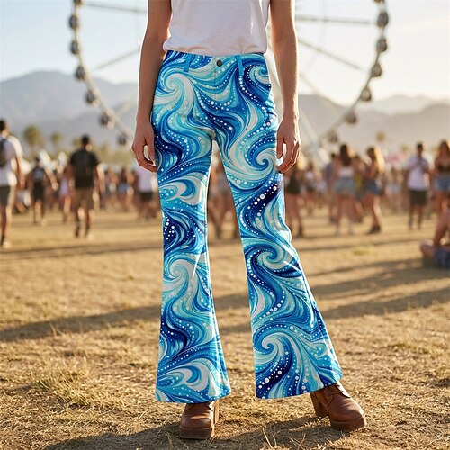 Retrò Vintage Boho Anni '70 Pantaloni Pantaloni a zampa d'elefante Hippie Disco Vita alta Psichedelico Costume Per donna Halloween Carnevale Festival Musicale Festa a tema retrò Adulti Pantaloni