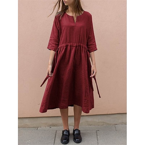 Per donna Vestito bianco Abito chemisier Abito casual Vestito longuette Tasche Essenziale Giornaliero Collo diviso Manica a 3/4 Estate Primavera Bianco Vino Liscio
