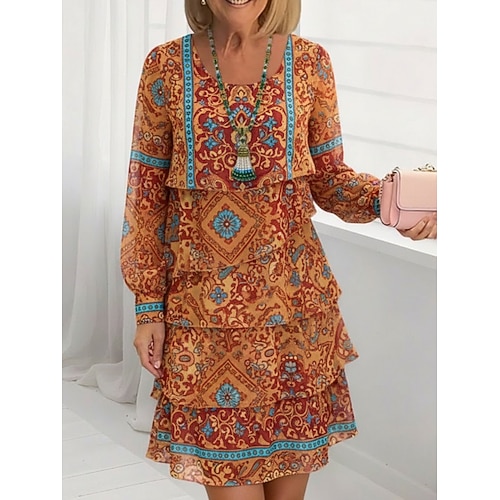 Per donna Mini Abito Vestito Casual Vestito in Chiffon Abito a Tubino Elegante Vintage Quotidiano All'aperto Weekend Vestibilità regolare Floreale Manica Lunga Girocollo Marrone Estate Primavera