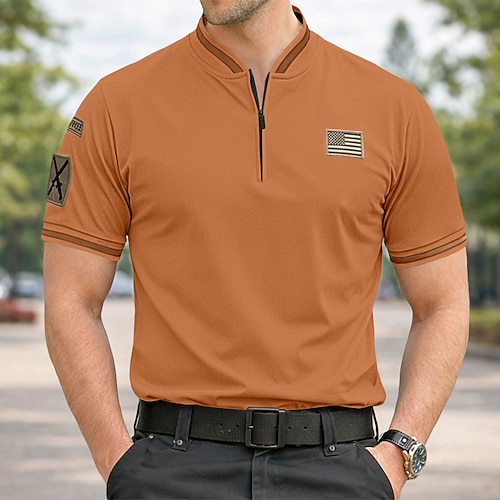 Per uomo Magliette Polo a Nido d'Ape Polo con zip Casuale Fitness Bavero Zip a un quarto Manica Corta Moda Muscolo Tinta unica Semplice Cerniera Estate Primavera Vestibilità su misura Nero Blu marino