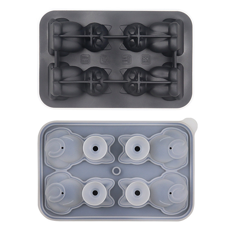 1pc Ice Cube Mold 2.4''/2.8'' Large 4 Cubes, French Bulldog,Cat, Ice Cube Tray with Lid, Fun and Cute Gifts for Whiskey, Cocktails and Bourbon with Easy Release