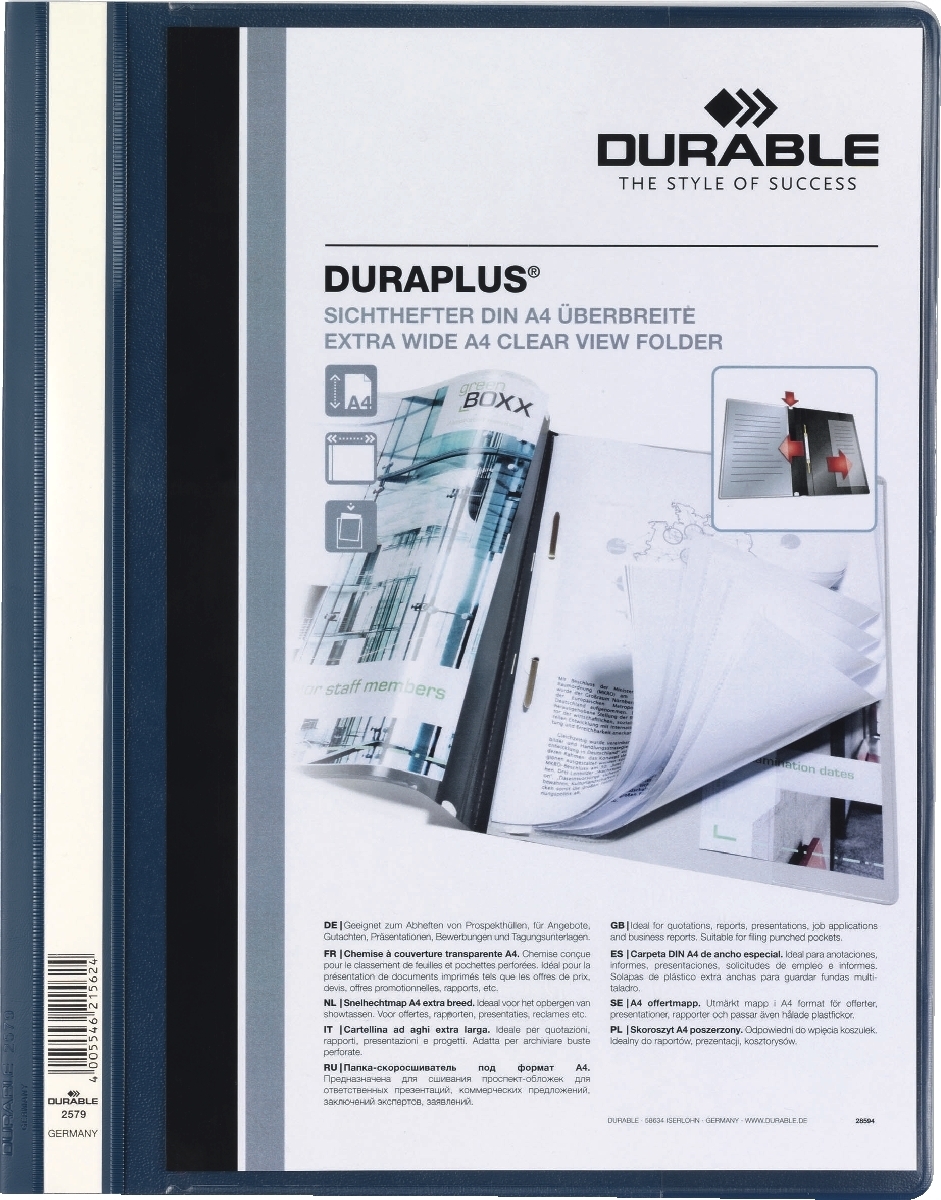 Durable Angebotshefter Duraplus A4 mit Sichttasche Folie dunkelblau Packung mit 25 Stück