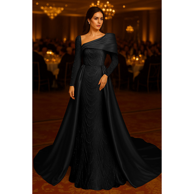 Sheath Column Floor Length Beaded Eembroidered Formal Dresses Mother of the Bride Dress Ball Gown with Cape Evening Gown Formal Dress Elegant Vintage Glittering Long Sleeve One Shoulder Wedding Formal