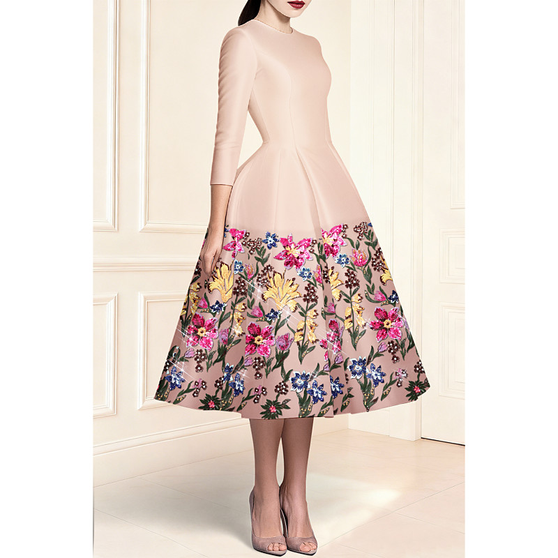 A-Line Floor Length Beaded Eembroidered Formal Dresses Mother of the Bride Dress Evening Gown Ball Gown with Overskirt Formal Dress Elegant Sparkle Floral 3/4 Length Sleeve Crew Neck Wedding Formal