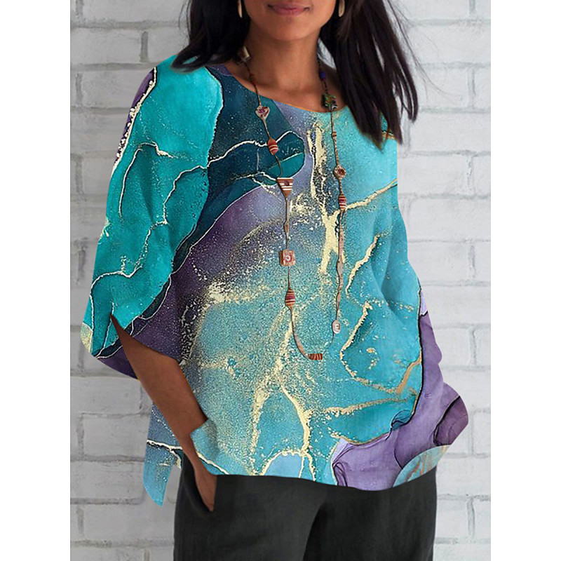 Women's Shirt Marble Daily Casual 3/4 Length Sleeve Crew Neck Regular Tops Daily Holiday Print Navy Blue Royal Blue Blue Sky Blue Dusty Blue Summer Spring Fall