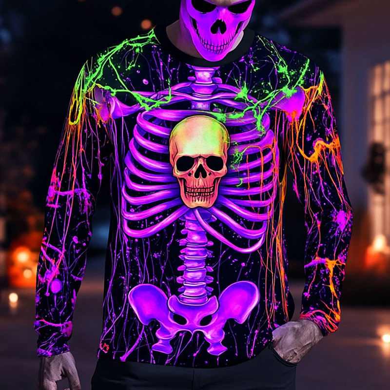 Skull Men's 3D Skeleton T Shirt Long Sleeve T shirt 3D Print Crew Neck Shirt Fashion Exaggerated Street Casual Daily Summer Spring Fall Clothing Apparel