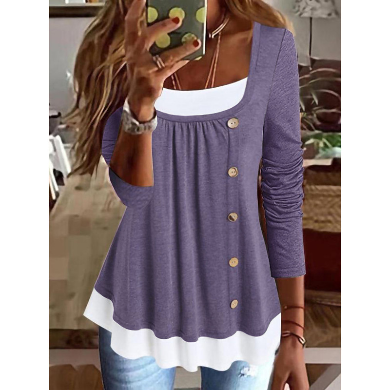 Women's Blouse Solid Color Vintage Stylish Classic Long Sleeve Crew Neck Regular Tops Daily Buttons Black Blue Purple Brown Green Spring Fall Winter