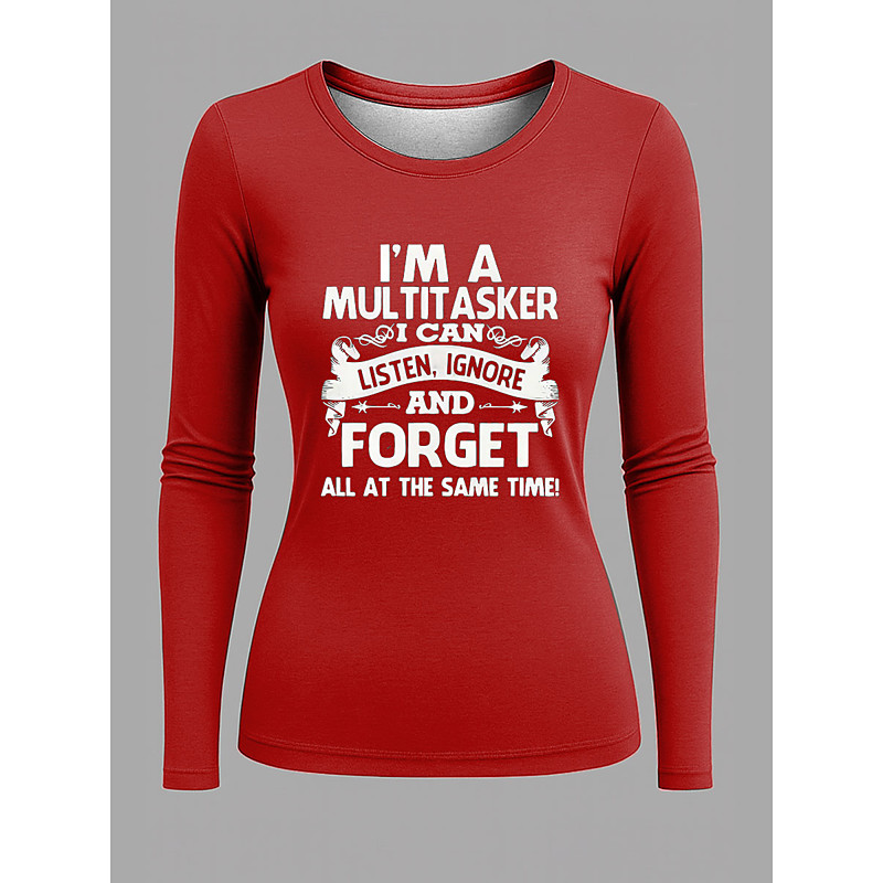 Women's T Shirt Graphic Letter Vintage Fashion Stylish Long Sleeve Crew Neck Round Neck Regular Tops Daily Weekend Print Black Red Blue Gray Spring Fall