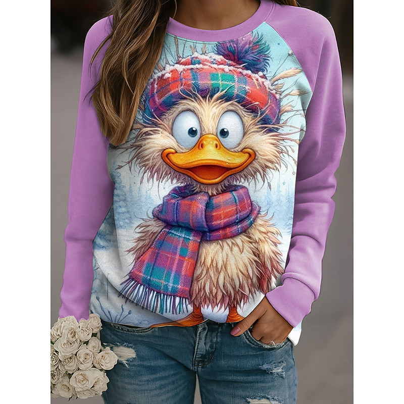 Women's Sweatshirts Graphic Animal Casual Long Sleeve Crew Neck Regular Tops Casual Holiday Print Yellow Red Blue Purple Fall Winter