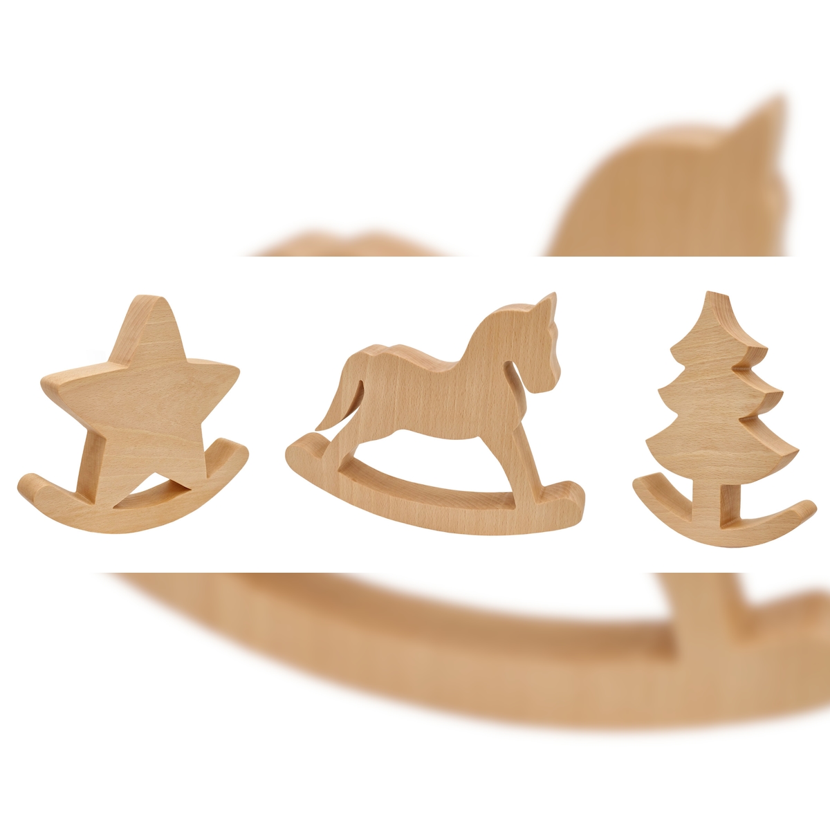 Erst-Holz Weihnachtsdeko Tischdeko Schaukel-Pferd, Stern, Baum o. 3er-Set Buche Geölt V-40.11-21