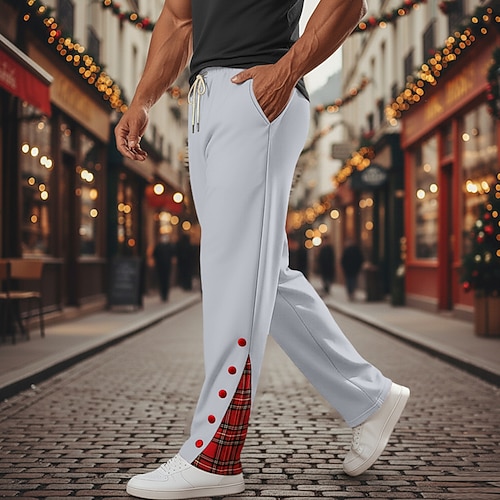 Per uomo Pantaloni da tuta Pantaloni Pantaloni della tuta a gamba dritta Pantaloni della tuta con fondo aperto Coulisse Elastico in vita Blocco di colori Traspirante Lunghezza intera Natale Feste