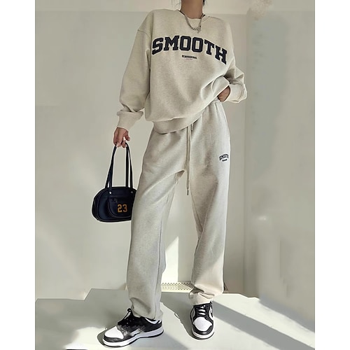 Per donna Set di tute e pullover Tuta da 2 pezzi Abiti da salotto Coulisse Baggy Lettera Completo Abbigliamento Autunno Grigio Escursionismo Lavoro Corsa Manica Lunga Sport Abbigliamento sportivo