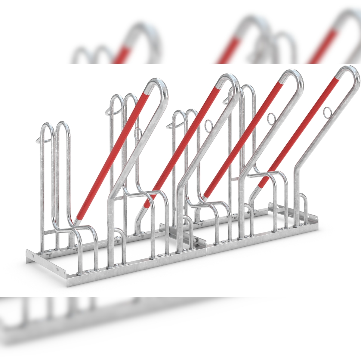Anlehnparker 4504 | Fahrradständer einseitig | für 4 Fahrräder | Freiaufstellung | erweiterbar | Abwechselnde Hoch-/Tiefeinstellung