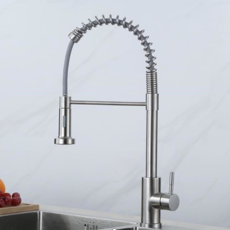 Kitchen Faucets 304 Stainless Steel Single Handle Single Lever Pull Down Sprayer Spring Kitchen Sink Faucet Brushed Nickel
