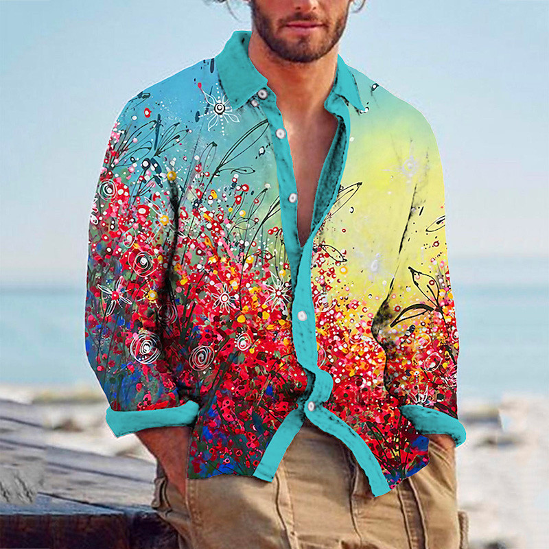 Men's Floral Shirt Button Up Shirt Long Sleeve Fashion Streetwear Designer Outdoor Casual Daily Summer Spring Fall Turndown Print Blue Orange