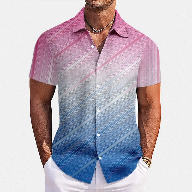 Men's Ombre Casual Shirt Button Up Shirt Short Sleeve Fashion Casual Causal Casual Summer Spring Turndown Button Up Pink