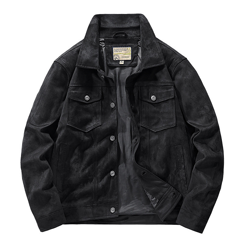 Men's Lightweight Jacket Faux Suede Jacket Vacation Daily Pocket Spring Fall Plain Fashion Classic Lapel Regular Black Khaki Coffee Gray Jacket