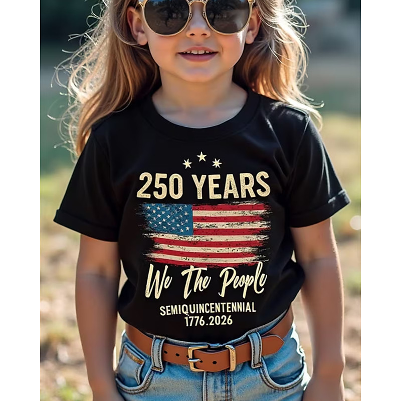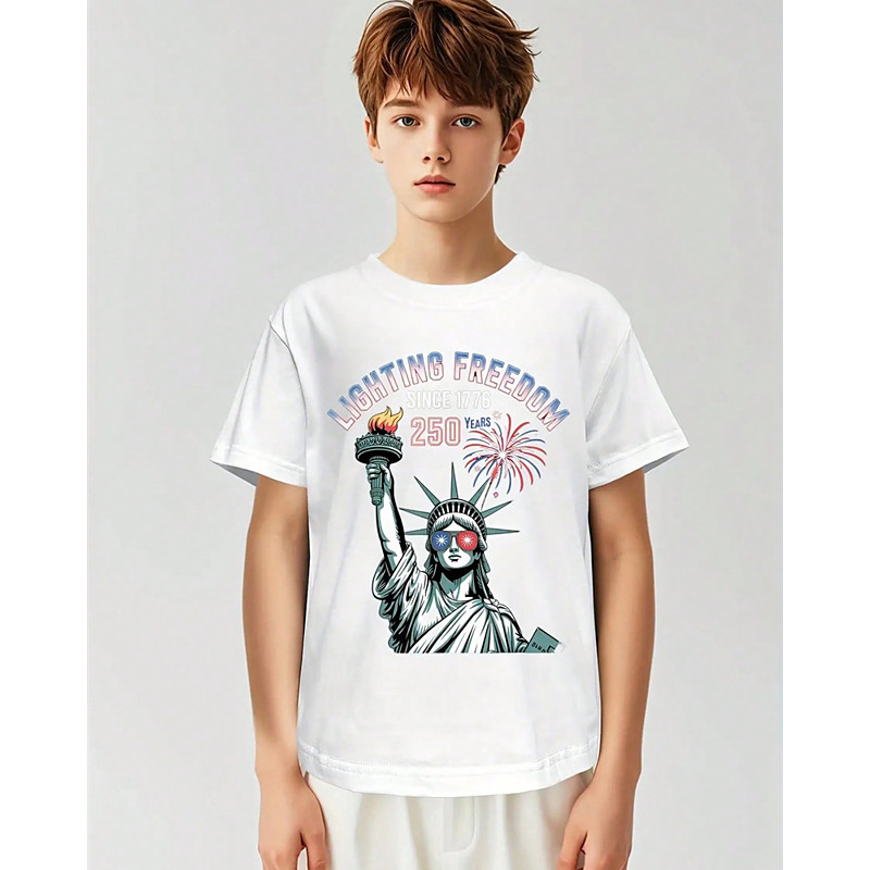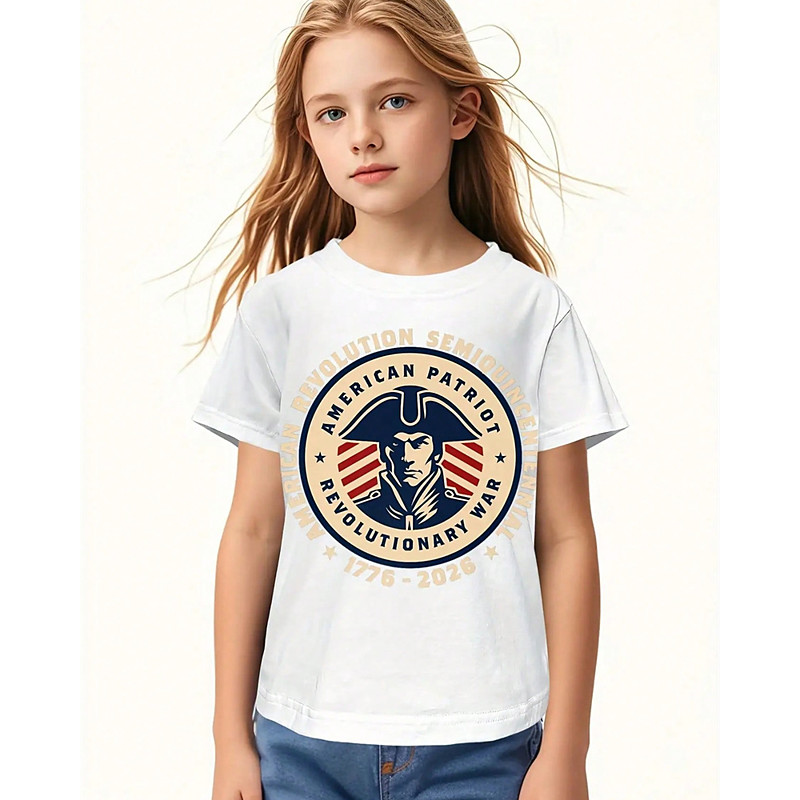 100% Cotton Kids Boys' Black White Graphic USA Flag 250th Anniversary T shirt Blouse Crew Neck Short Sleeve Outdoor Dailywear Fashion Streetwear Designer Printing Summer