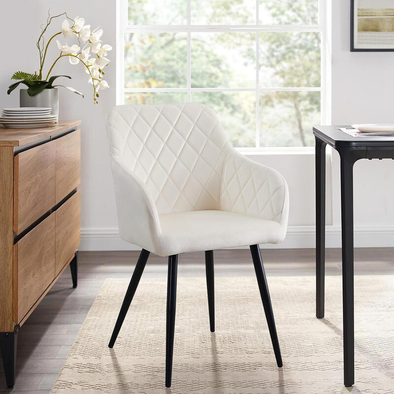 CLIPOP Velvet Dining Chairs Set of 2 Upholstered Living Room Armchair with Metal Legs Reception Leisure Corner Chair for Lounge 0016 single cream 41*51*83 cm