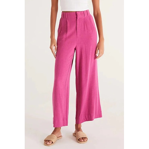 Per donna Gamba larga Pantaloni in cotone e lino Pantaloni Eleganti Casual Lunghezza intera Naturale Semplice Tasca Comodo All'aperto Streetwear Uscire Aalbicocca Blu marina Nero Fuschia Estate