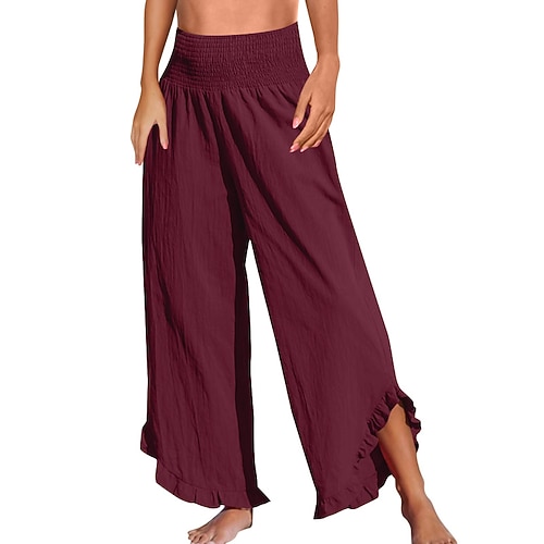 Per donna Pantaloni in cotone e lino Culotte Gamba Larga Pantaloni Eleganti Moda Streetwear Lunghezza intera Naturale Semplice Elastico in vita Spacco Comodo All'aperto Confortevole All'aperto Uscire
