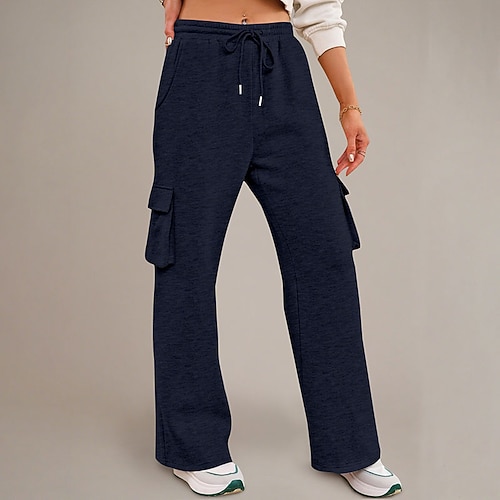 Per donna Pantaloni Cargo Culotte Gamba Larga Chinos Streetwear Casual Lunghezza intera Vita media Semplice Coulisse Tasca Confortevole Micro-elastico All'aperto Vacanza Streetwear Nero Blu marino